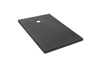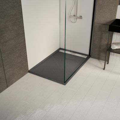 Receveur de douche L.120 x l.80 x H.4 cm, acrylique renforcé gris effet pierre, avec grille d'évacuation noire, Galedo Pedra