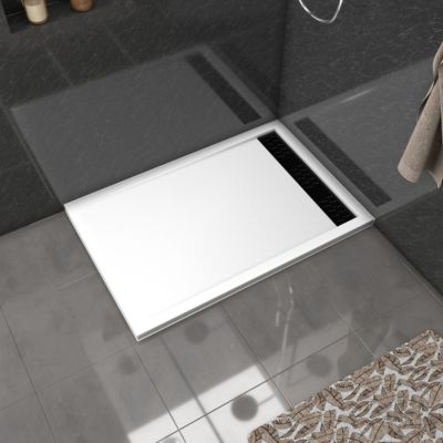Receveur de douche L.120 x l.80 x H.4 cm, acrylique renforcé blanc, avec grille d'évacuation noire, Galedo Pure 2