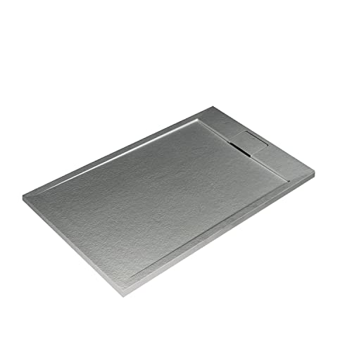 Receveur de douche L.120 x l.80 x H.4 cm, acrylique renforcé gris effet pierre, avec grille d'évacuation gun metal, Galedo Pedra