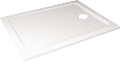 Ultraflat S I.Life Receveur de Douche Ultraplat 3 cm d'Épaisseur, Rectangulaire 120 x 80 cm, Finition Pierre Texturée, Naturellement Anti-Dérapant, Cache-Bonde Fourni, Blanc