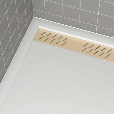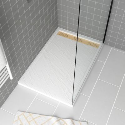 Receveur de douche L.120 x l.80 x H.4 cm, acrylique renforcé blanc effet pierre, avec grille d'évacuation dorée, Galedo Pedra