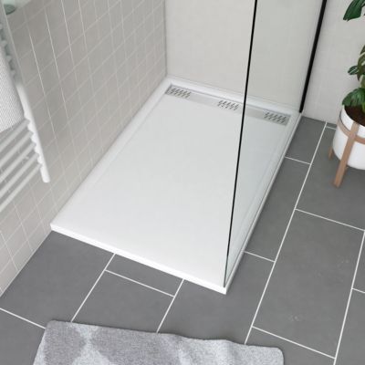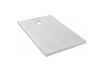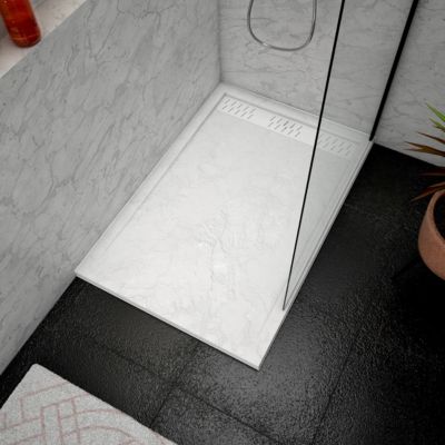 Receveur de douche L.120 x l.80 x H.4 cm, acrylique renforcé blanc effet pierre, avec grille d'évacuation blanche, Galedo Pedra