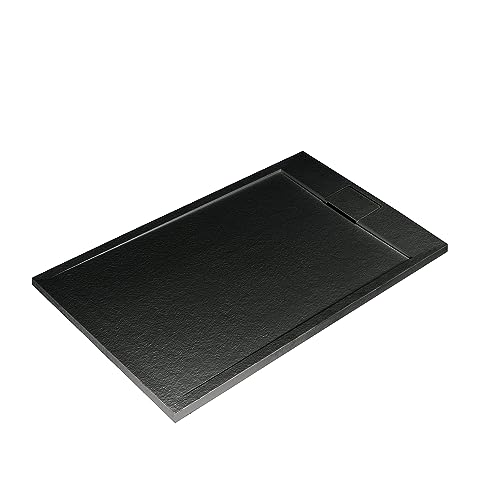Ultraflat S I.Life Receveur de Douche Ultraplat 3 cm d'Épaisseur, Rectangulaire 120 x 80 cm, Finition Pierre Texturée, Naturellement Anti-Dérapant, Cache-Bonde Fourni, Noir