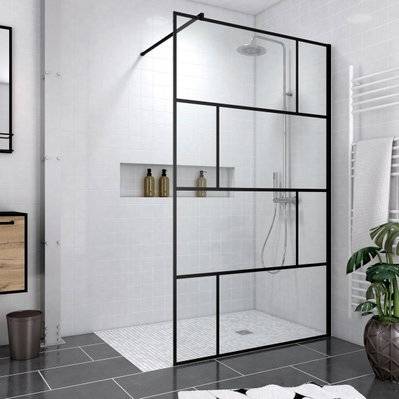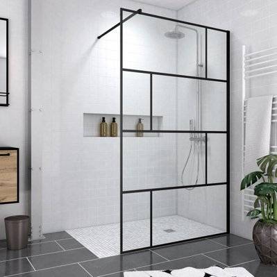 Pack Paroi de douche 120x200 cm noir mat + RECEVEUR DE DOUCHE A CARRELER 80x120CM RECOUPABLE