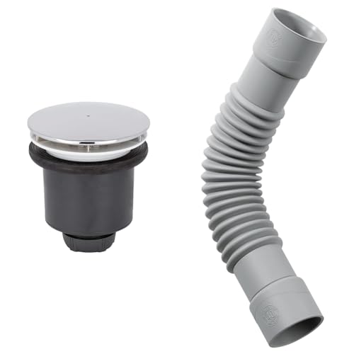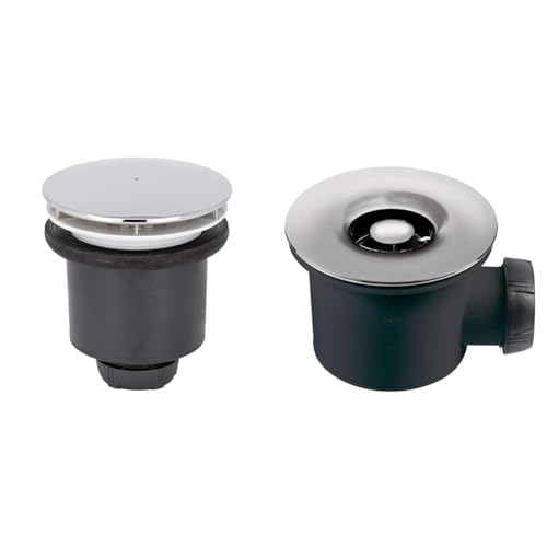 Wirquin 30723746 Bonde de douche Tourbillon à sortie verticale pour receveurs ø90 avec dôme en ABS, chromé, Gris & 30723136 Siphon de lavabo Ø32 réglable en hauteur, blanc