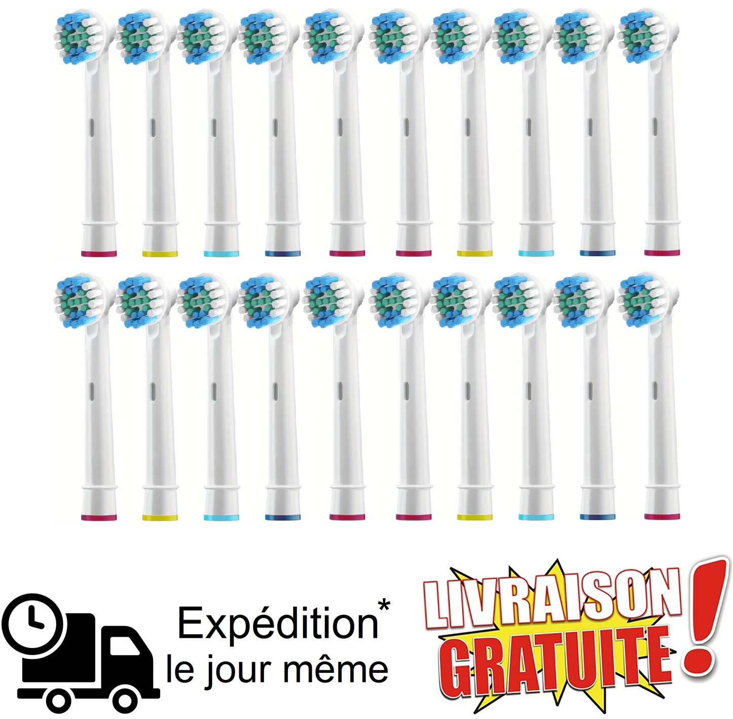 20 Têtes de Recharge Brosse à Dent Electrique Compatibles Oral-B Remplacement
