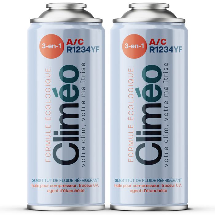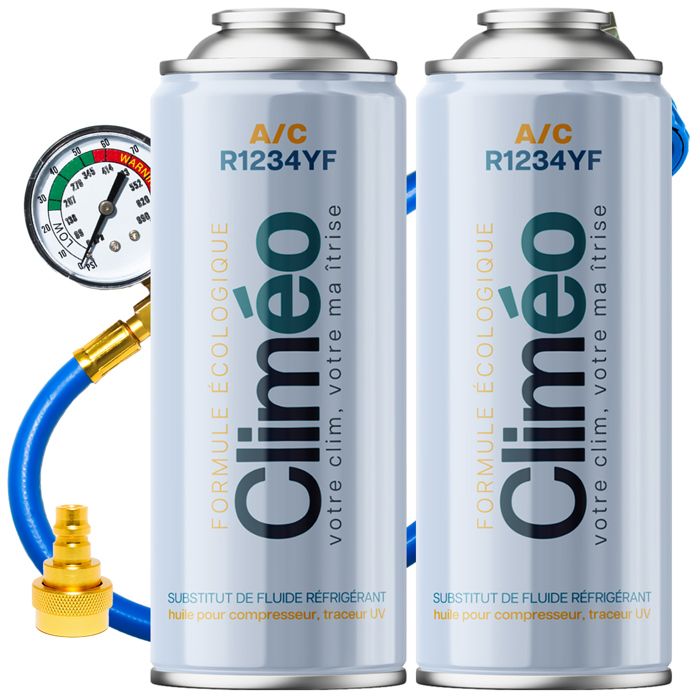 Kit Recharge Climatisation Voiture R1234yf - CLIMEO 2in1 - 2x235g - Gaz Réfrigérant - Bombe Recharge Clim Auto