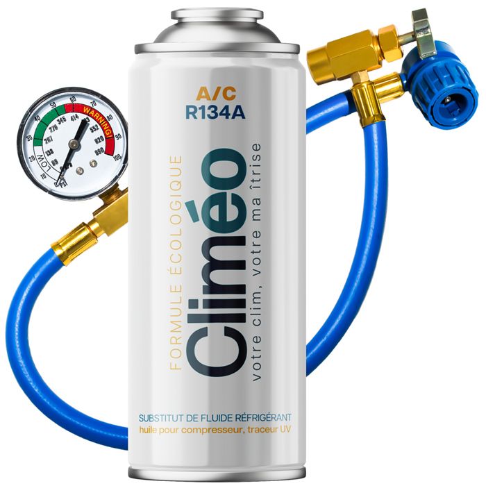 Kit Recharge Climatisation Voiture R134a/R12 - CLIMEO 2in1 - 235g - Gaz Réfrigérant - avec Flexible de recharge