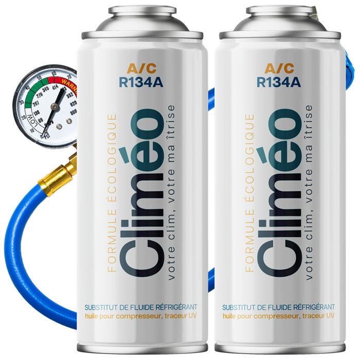 Kit Recharge Climatisation Voiture R134a/R12 - CLIMEO 2in1 - 2x235g - Gaz Réfrigérant - Bombe Recharge Clim Auto