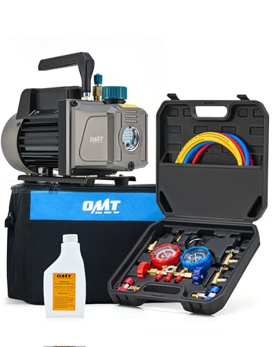 Orion Motor Tech Pompe à Vide Climatisation 186W 100 L/Min Pompe à Vide Frigoriste Kit de Recharge Climatisation Voiture avec Tuyau Jauge Adaptateurs pour Systèmes Auto HVAC R134a R12 R22 R502
