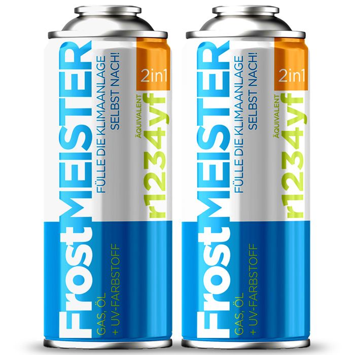 Kit Recharge Climatisation Voiture R1234yf - FROSTMEISTER 2in1 - 2x235g - Gaz Réfrigérant - Bombe Recharge Clim Auto