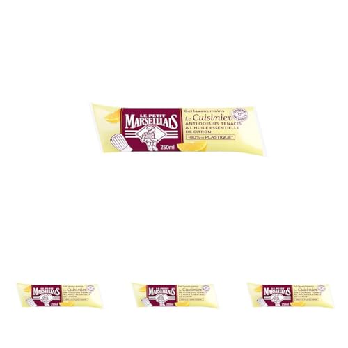 Le Petit Marseillais - Recharge Gel Lavant Mains Le Cuisinier (berlingot de 250 ml) – Savon liquide anti-odeurs tenaces à l'huile essentielle de citron – 92% d'ingrédients d'origine naturelle