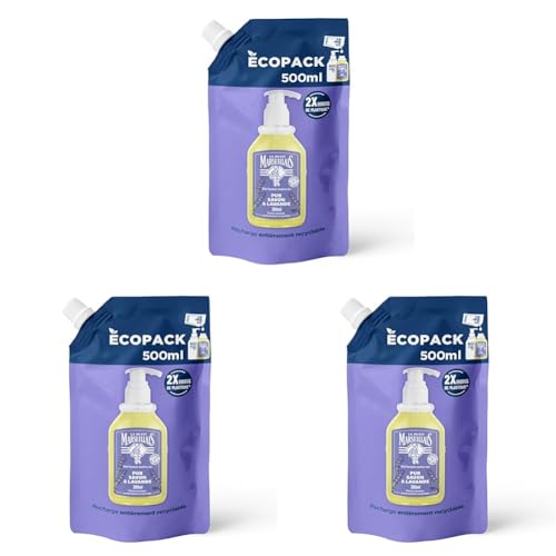 Le Petit Marseillais Recharge Gel Lavant Mains Pur Savon & Lavande (écopack de 500 ml) – Recharge savon liquide pour flacon-pompe – Savon mains à l’huile essentielle de lavande (Lot de 3)
