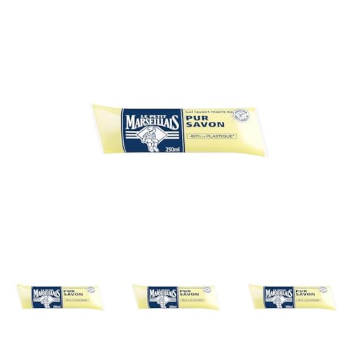 Le Petit Marseillais | Recharge Gel Lavant Mains Pur Savon (berlingot de 250 ml) – Recharge savon liquide avec 92% d'ingrédients d'origine naturelle – Savon mains au pH neutre pour la peau (Lot de 4)