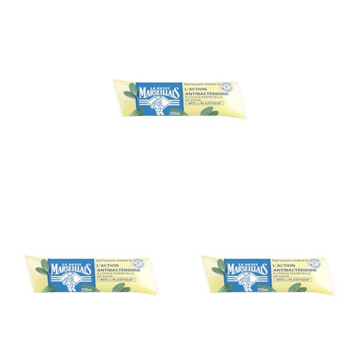 Le Petit Marseillais | Recharge Gel Lavant Mains Action Anti-Bactérienne (berlingot de 250 ml) – Savon mains liquide à l'huile essentielle de sauge – 92% d'ingrédients d'origine naturelle (Lot de 3)