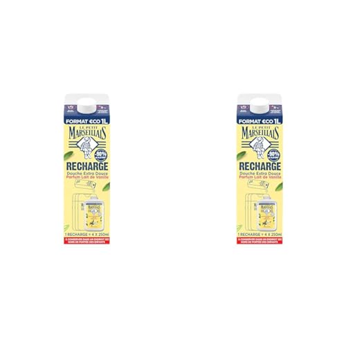 Le Petit Marseillais Eco-recharge Crème de Douche Extra Doux Lait de Vanille,Recharge, 1 x 1L (l'emballage peut varier) (Lot de 2)