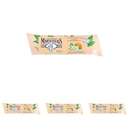 Le Petit Marseillais | Recharge Crème Lavante Mains Fleur d'Oranger Bio (berlingot de 250 ml) – Savon liquide avec 92% d'ingrédients d'origine naturelle – Emballage avec -80% de plastique* (Lot de 4)