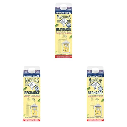 Le Petit Marseillais Eco-recharge Crème de Douche Extra Doux Lait de Vanille,Recharge, 1 x 1L (l'emballage peut varier) (Lot de 3)
