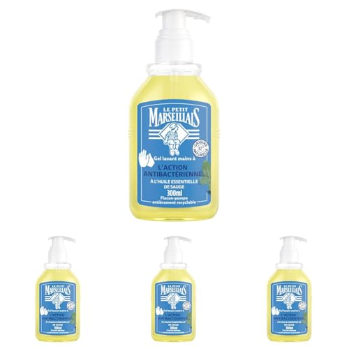 Le Petit Marseillais | Recharge Gel Lavant Action Anti-Bactérienne (flacon-pompe de 300 ml) – Savon liquide à l'huile essentielle de sauge – 92% d'ingrédients d'origine naturelle (Lot de 4)