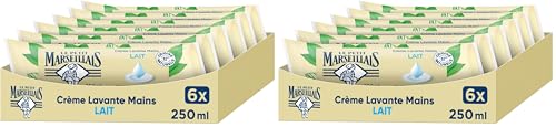 Le Petit Marseillais | Recharge Crème Lavante Mains Lait (lot de 12 berlingots de 250ml) – Recharge savon liquide avec 92% d'ingrédients d'origine naturelle – Savon mains au pH neutre pour la peau