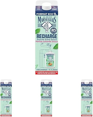 Le Petit Marseillais Eco-recharge Crème de Douche Extra Doux Amande Douce; Recharge;1 x 1L (l'emballage peut varier) (Lot de 4)