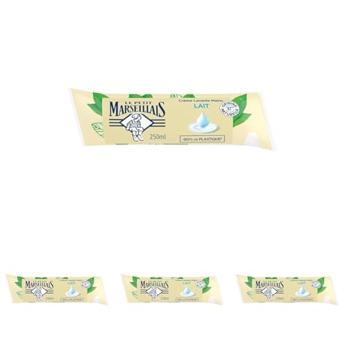 Le Petit Marseillais | Recharge Crème Lavante Mains Lait (berlingot de 250 ml) – Recharge savon liquide avec 92% d'ingrédients d'origine naturelle – Savon mains au pH neutre pour la peau (Lot de 4)