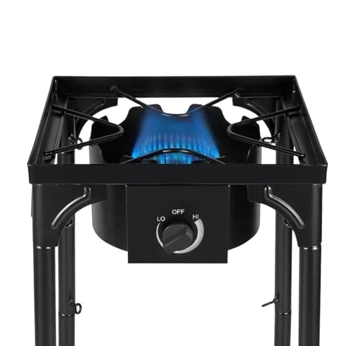 INTEC - Réchaud à Gaz 1 feu 4500W 4 Pieds modulables 3 Hauteurs Bruleur en Fonte - Cuisine Extérieure 40 x 40 x H78cm Allumage Piezo