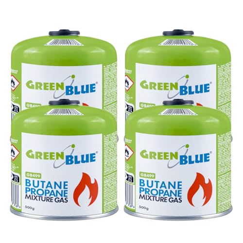 Green Blue Cartouche de gaz GB499 500 g EN417, Filetage 7/16", Propane-Butane, système Gas-Stop, pour réchauds de Camping, brûleurs de Camping et de randonnée Ainsi Que pour Camping-Cars (1, Vert)