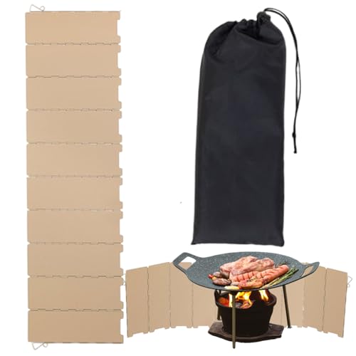 ETUCYNG Pare-vent pour réchauds de camping | Pare-vent pliable à 10 panneaux en métal, accessoires de camping avec sac de rangement, protection légère pour l'extérieur