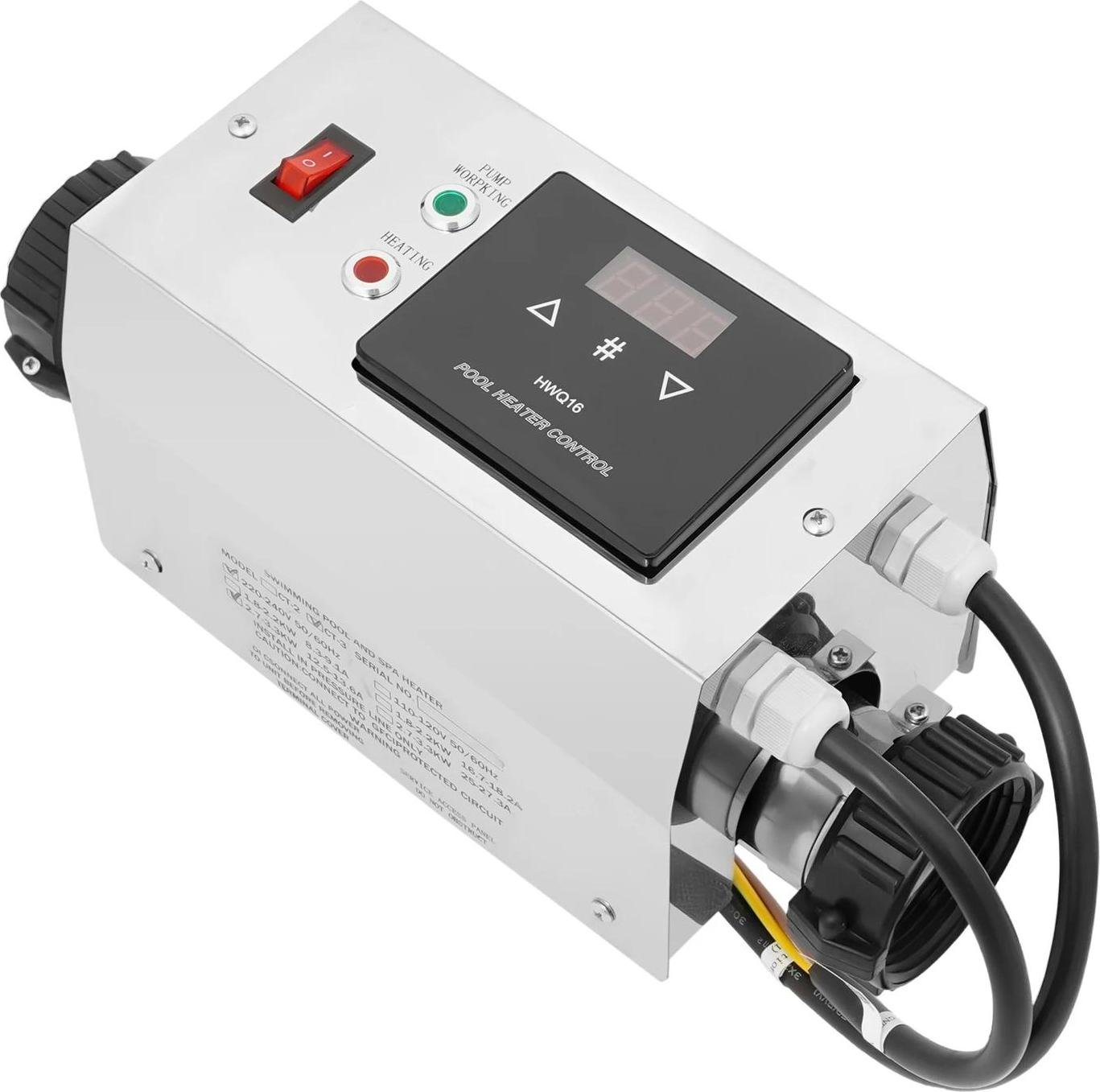 Chauffage de piscine - Réchauffeur électrique immergé - Puissance 3 kW - Acier inoxydable - Thermostat - Pour piscines