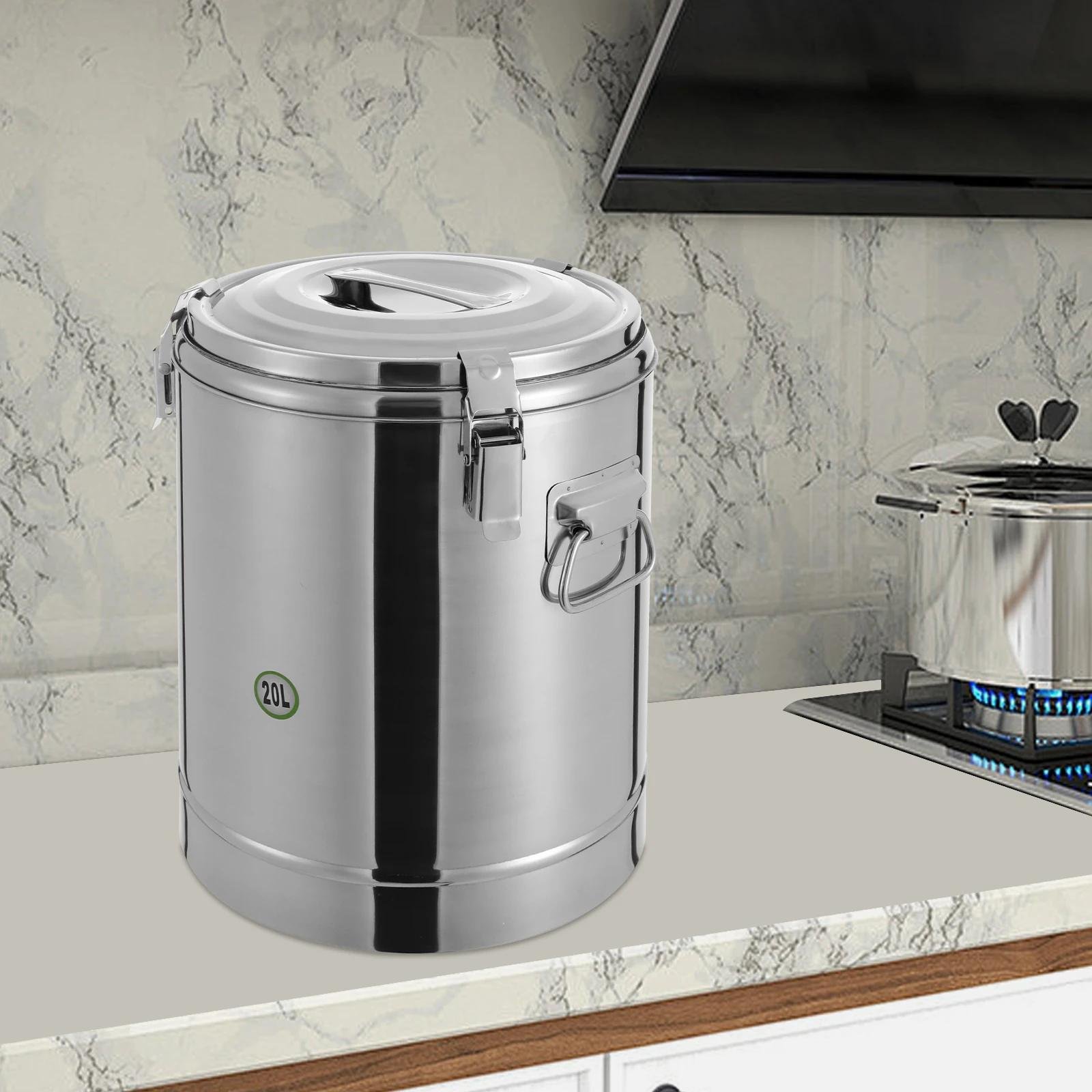 Xigner Récipient isotherme de transport professionnel, 10/20/30 l, en acier inoxydable, hermétique, avec couvercle et fermeture à pression, pour pâtes, soupe, céréales, grand récipient isotherme pour
