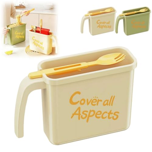 Bol instantané – Tasse à soupe, récipient résistant à la chaleur, support de bol à nouilles instantanées – Tasse à ramen à immersion directe, qualité sûre, sans lavage, avec fourchette pour