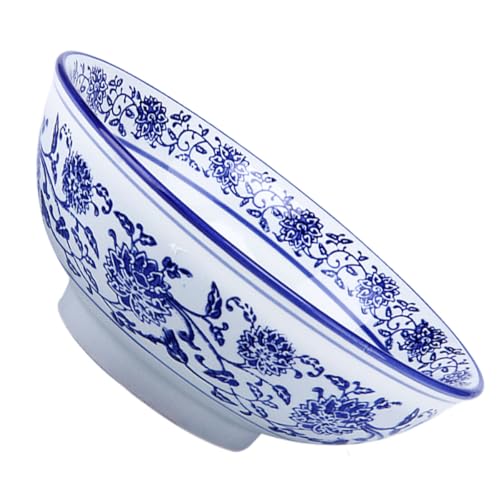 HEMOTON 1 Pc Porcelaine Bleue Et Blanche Bols à Soupe Récipient avec Couvercle Profonde Bols Bol à Soupe en Porcelaine Bols De Dîner Style Bol Nourriture Céramique Bol en Bois
