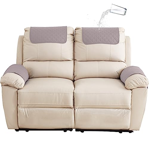 GYHH Housse D'accoudoir De Canapé, Housse D'appui-tête pour Housse De Bras De Fauteuil Inclinable, Housse De Fauteuil Antidérapante Matelassée (Light Gray,2 Seat Recliner | 4 pc)