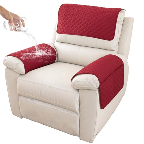 GYHH Housse D'accoudoir De Canapé, Housse D'appui-tête pour Housse De Bras De Fauteuil Inclinable, Housse De Fauteuil Antidérapante Matelassée (Red,1 Seat Recliner | 3 pc)