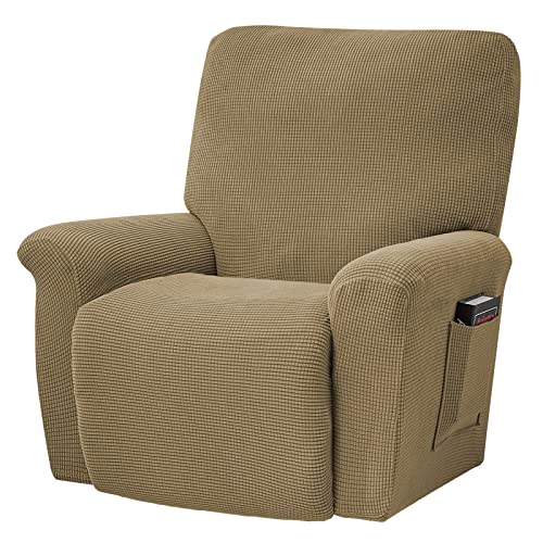 ele ELEOPTION Housse de Canapé Recliner, Housse Elastique pour Fauteuil de Repos, 4 Pièces, Housse Elastique pour Inclinable, Fauteuil de Relaxation de Massage (Marron Clair)