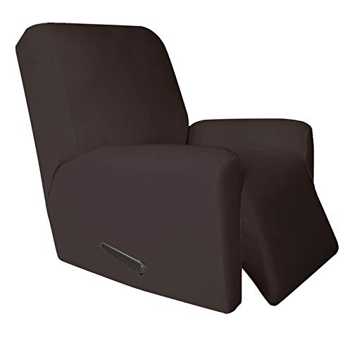 Easy-Going 4 Pieces Microfiber Stretch Recliner Slipcover – Spandex Soft Fitted Sofa Couch Cover, Washable Furniture Protector with Elastic Bottom for Kids, Pet(Recliner, Chocolate)