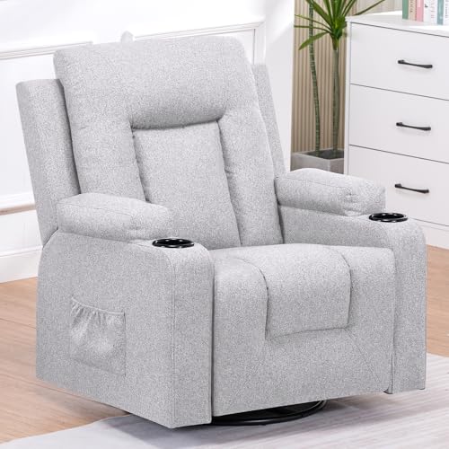 COMHOMA Fauteuil Relaxation en Tissu avec Fonction Inclinable, Recliner Chair, Pivotant à 360 °, 2 Poches Latérales et Porte-Tasse, Gris Clair