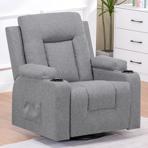 COMHOMA Fauteuil Relaxation en Tissu avec Fonction Inclinable, Recliner Chair, Pivotant à 360 °, 2 Poches Latérales et Porte-Tasse, Gris Foncé