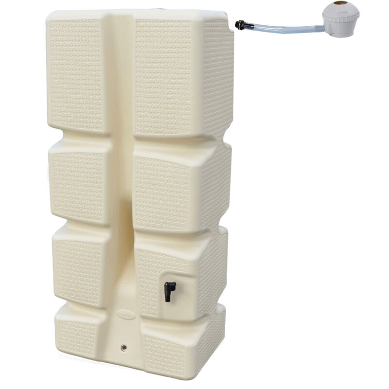 EDA - Récupérateur d'eau RÉCUP'ECO 310 L - Décor Tressé - Kit Collecteur Filtrant Inclus + Robinet - 60 x 40 x H.138 cm - Beige