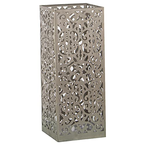 DRW Porte-Parapluie carré en métal ajouré avec Plateau récupérateur d'eau en PVC en Nickel 19 x 19 x 49 cm