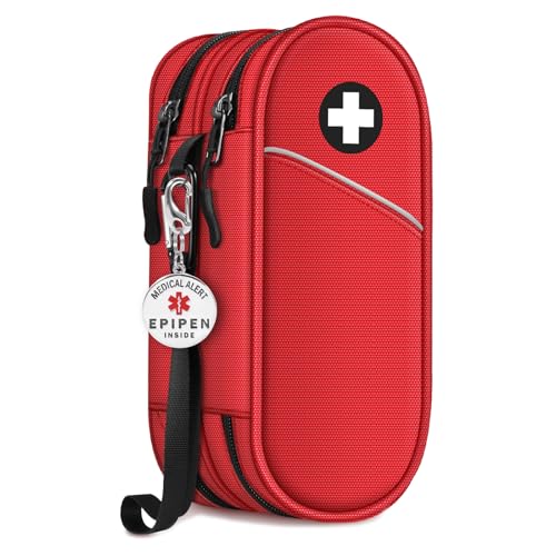 SITHON Sac à Médicaments avec EPIPEN Inside Étiquette d'alerte, Vide Trousse à Pharmacie Organisateur de médicaments Isotherme Portable pour 2 EpiPen pour Voyage l'extérieur (Rouge)