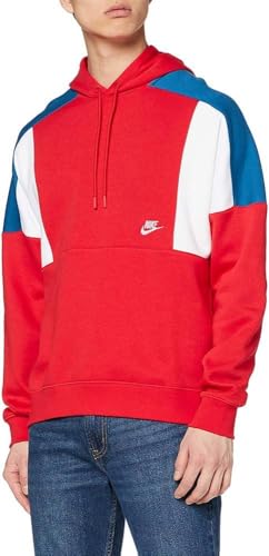 Nike M NSW Hoodie PO BB CB Sweat-Shirt Homme University Red/White/Industrial Blue/(White) FR: XS (Taille Fabricant: XS)
