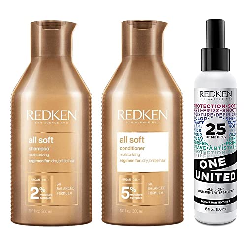 Redken, Routine Hydratante pour Cheveux Secs à Très Secs, Colorés ou Naturels, Nourrit & Renforce la Fibre, Souplesse et Douceur, Huile d'Argan et Oméga 6, All Soft