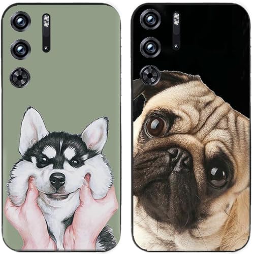 Lot de 2 coques pour Nubia RedMagic 9 Pro / 9 Pro+ / 9S Pro / 9S Pro +, Husky Carlin imprimé durable dégradable en gel de silicone TPU