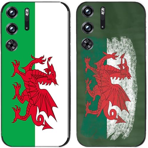 Lot de 2 coques pour Nubia RedMagic 9 Pro / 9 Pro+ / 9S Pro / 9S Pro +, rétro drapeau gallois imprimé durable dégradable en gel de silicone TPU