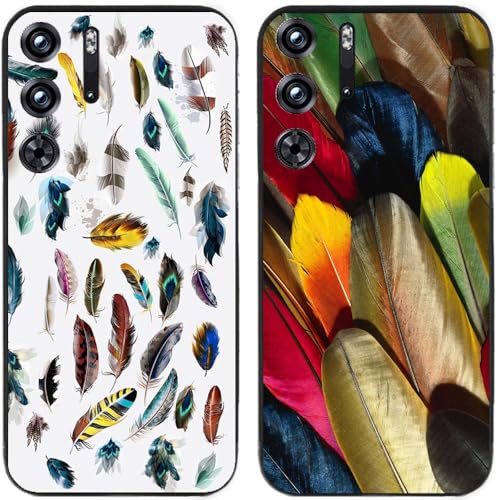 Lot de 2 coques pour Nubia RedMagic 9 Pro / 9 Pro + / 9S Pro / 9S Pro +, motif plume colorée, durable, dégradable, en gel de silicone TPU