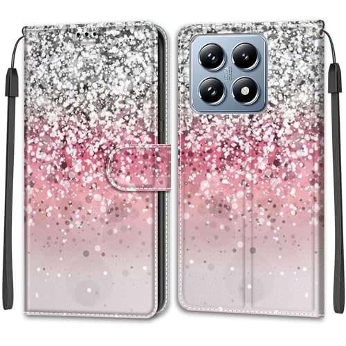 TOMYOU Coque pour Xiaomi Redmi 14T Pro, Fermeture Magnétique Pochette Protection Housse avec Fentes pour Cartes Étui Argent et Rose