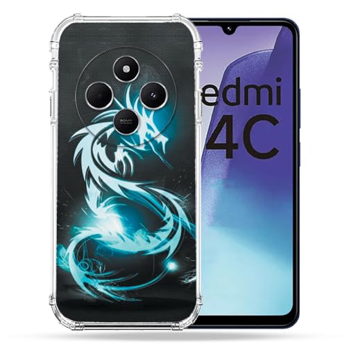 Cokitec Coque Renforcée pour Xiaomi Redmi 14C 4G Fantastique Dragon Bleu