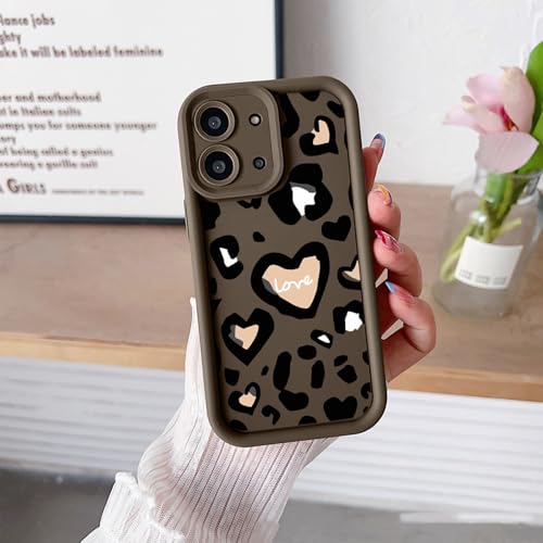 YANJIEER ESONG Coque Motif Léopard Cœur pour Xiaomi Redmi 15C, Etui Ultra Mince Joli Belle Mignonne Esthétique pour Femme Fille, Housse en Antichoc Souple Silicone Protection Case Marron